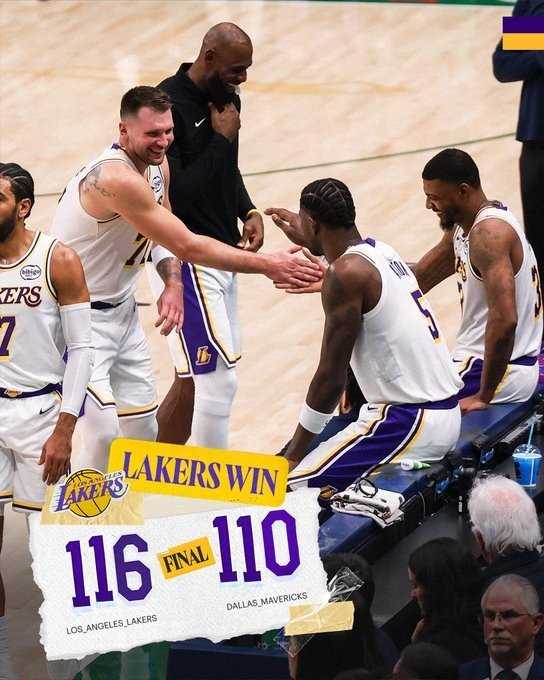 1月25日讯 NBA常规赛,湖人客场116-110战胜独行侠。
